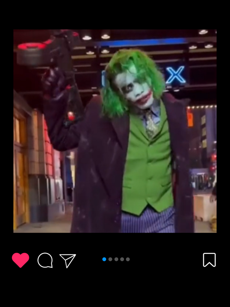 Offset didn’t just wear the Joker suit — he became the Joker. From the neon-green hair to the purple drip and sinister grin, he looked like he walked straight out of Gotham. This wasn’t “costume party,” this was cinematic villain energy.